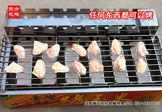 烤玉米可以用滾軸自動旋轉燒烤,烤其他類產品需要放到鋼網上,人工翻動。