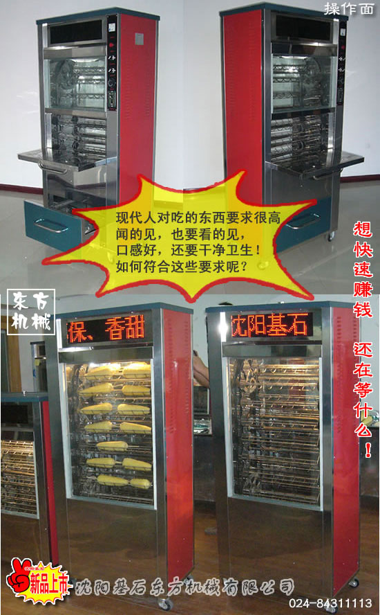 新款多功能烤地瓜機(jī),電烤爐,立式燒烤機(jī):本系列烤地瓜機(jī),選用優(yōu)質(zhì)加厚不銹鋼材料,保溫效果最好,透明玻璃觀察窗,全自動(dòng)控溫,轉(zhuǎn)動(dòng)采用無級(jí)調(diào)速,環(huán)保節(jié)能,產(chǎn)量高,款式新穎,外觀精美豪華,可烤制地瓜,土豆,玉米等食品,也可以進(jìn)行肉類燒烤,一機(jī)多用。真正實(shí)惠。適合超市、商場、學(xué)校、市場、步行街等場所.
