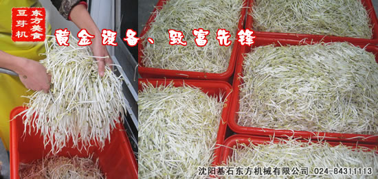 3、節省勞力,操作方便。將泡后的種子放進豆芽機育芽箱內, 就不用管了,它會自動加溫,自動淋水,經過3-3.5天時間就可生產出潔白脆嫩的 豆芽。