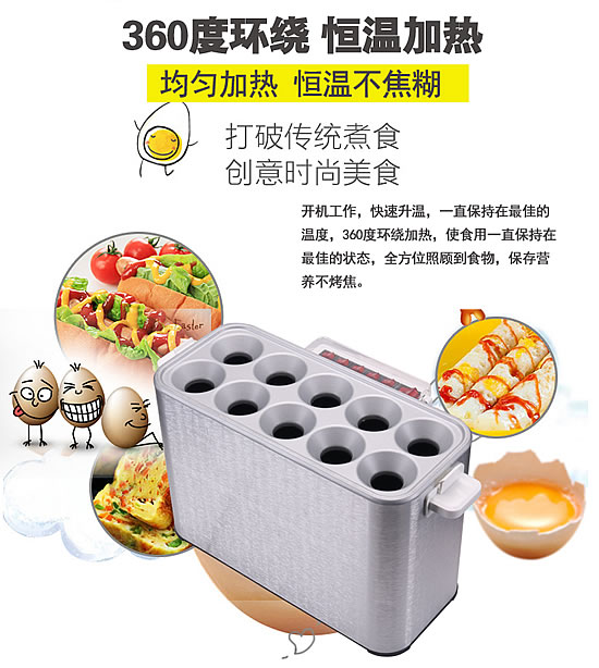 蛋腸機(jī)開機(jī)工作,快速升溫,一直保持在最佳的溫度,360度環(huán)繞加熱,使食用一直保持在最佳的狀態(tài),全方位照顧到食物,保存營(yíng)養(yǎng)不烤焦。
