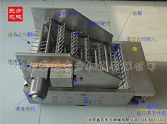 特 點:速度可控,溫度可控,油條從正面進口放入,從后面出口自動翻出。