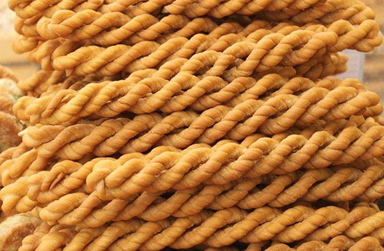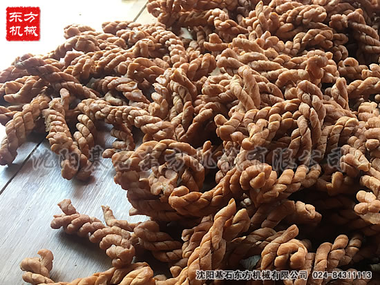 本機通過更換模具可生產3、6、9股小麻花三類麻花食品,花形美觀漂亮.噴油器采用新式壓縮機,噪音小,耗電量低;自動噴油,可使麻花股與股之間不會粘接到一塊,油嘴噴出的油霧大小可調,按需要而定,有利于油炸起發.麻花的長短自由控制,任意調整,自動切斷極大的提供高了生產效率和產品質量,操作簡單,一般人員均可操作,是提供優質麻花打造品牌最理想的生產設備.1、設計先進、結構合理、占地面積少. 2、操作簡便、高效節能、安全衛生、無噪音無污染. 3、通過變換機芯,即可生產各種粗、細、多股麻花,產品樣式.