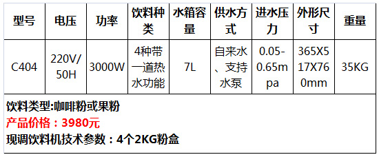 現(xiàn)調(diào)飲料機中文液晶顯示,高精度出粉量和出水量,出杯速度極快,設(shè)備通過CPU程序控制,具有加粉提示,統(tǒng)計功能。采用離心風機全自動變換檔位抽濕。水箱的溫度可以按不同要求調(diào)整,具有雙重溫度保護裝置。
