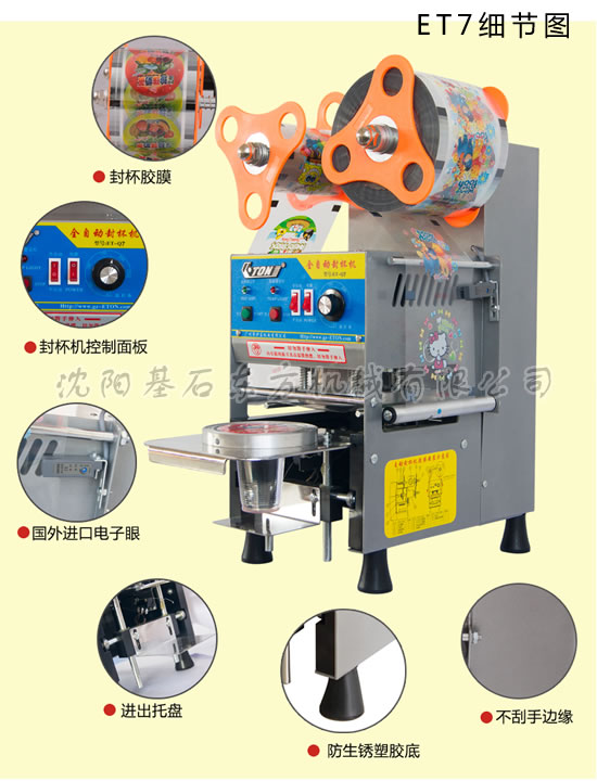 特點:本產品內部裝有自動卷膜感應和不傷刀感應,該功能作用是即使操作不當,機器也不會做沖杯工作和卷膜,從而保證不損壞齒刀。工藝先進、款式新穎、結構合理、操作靈活,具有省力、省時,適用于小型食品廠、飲料廠及餐飲門市使用的最佳設備。獨特雙杯結構,可供用戶自由搭配.是一種用于食品碗式封口的包裝機械。