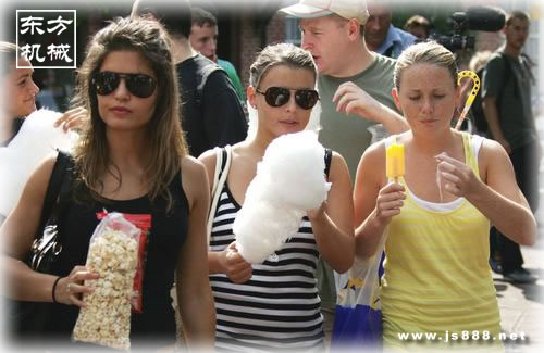 臺式拉絲棉花糖機,采用加厚不銹鋼制造,外型美觀獨特,可以用220伏照明電,也可以用12伏電瓶,可以裝在24寸自行車尾架上,也可以裝在摩托車尾架上,方便流動作業,也可以方便的把它從自行車或摩托車上取下來,放在地上或柜臺上操作,外形美觀、攜帶方便、占地僅0.5平方米、不受經營場地限制,用該機生產的彩色棉花糖好吃又好看,讓人回味無窮.深受男女老少,特別是兒童的喜愛.一支棉花糖成本5分錢左右,銷售每支為1-2元不等。每20秒鐘加工一個棉花糖球,1斤白沙糖可做成100個棉花糖球左右,1斤白沙糖產值可達100元以上,一天可凈賺幾百元.適合學校門口、公園 、市場、車站、大型工廠門口,燈光夜市、百貨商場、幼兒園和大商場門口人多的繁華地帶。此機堅固耐用,小本投資,無風險。現做現賣,獲利可觀,使用簡單。