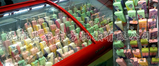 3)透明塑料冰棒料盒,呈階梯式排列,便于存放,展示效果佳;