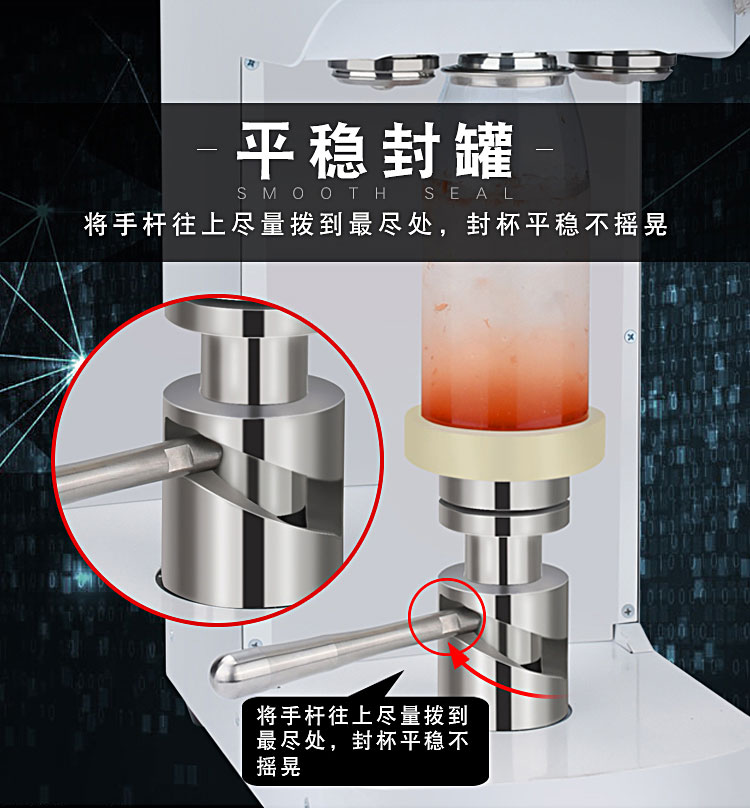 易拉罐封杯機適用于奶茶店、冷飲店、休閑水吧、早餐店、影院等場所,產品體積小,運用靈活,封口速度快,使用起來更方便更快捷。